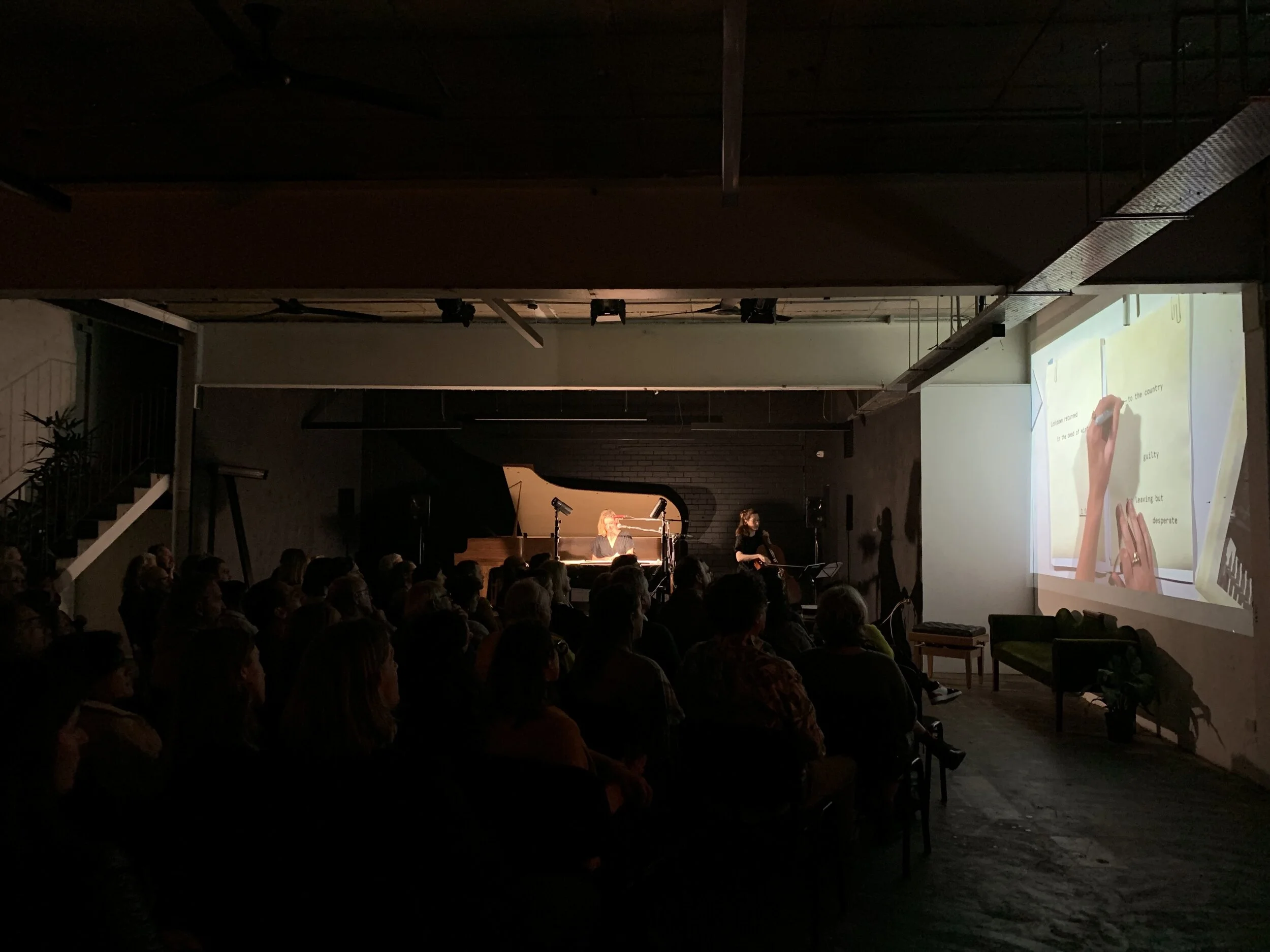 A selection of prints from the Porch Diaries series was exhibited at Counihan Gallery, Brunswick, from 11 May — 18 July 2021 and at Blue Mountains Cultural Centre, Katoomba from 8 May — 20 June 2021. Porch Diaries x Letterboxes Concerts was performed at Tempo Rubato, Brunswick from 3—4 May 2021.