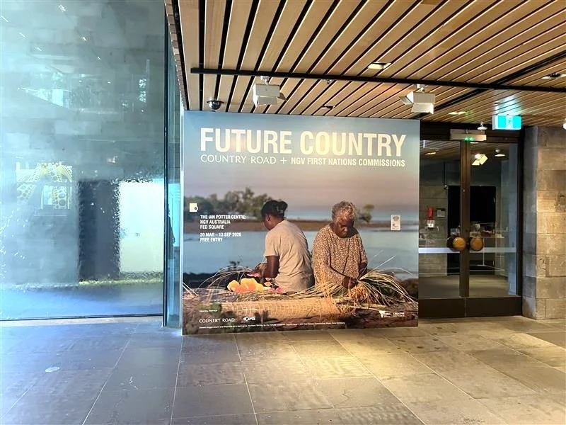 In 2026, FUTURE COUNTRY – the second iteration of the Country Road + NGV First Nations Commissions – invites artists to look to the future while simultaneously acknowledging the past. Working across diverse mediums and innovative practices, the selected artists respond to the exhibition’s key themes of ancestral memory, truth-telling, restorying, and future-making.